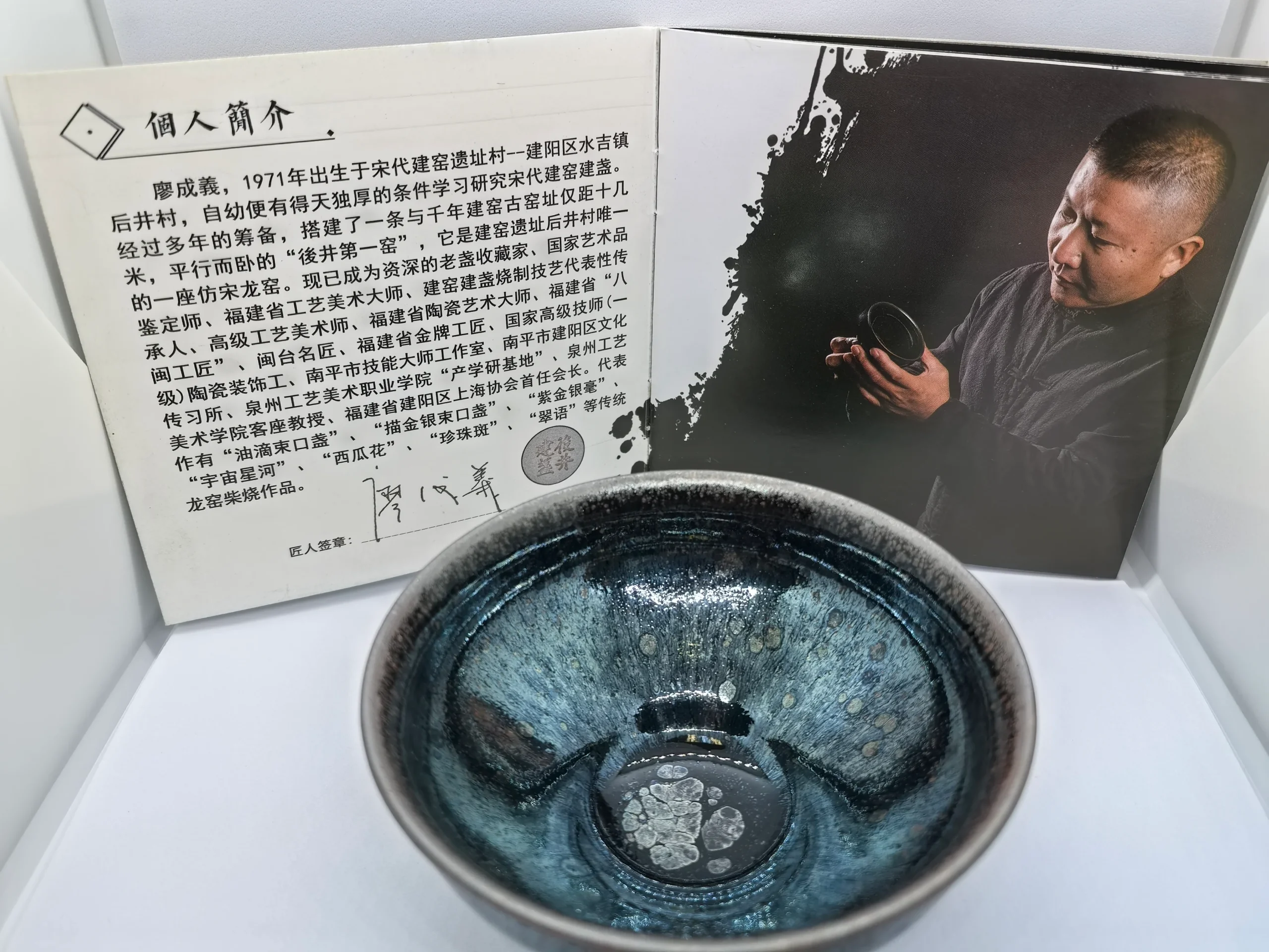 - 工匠傳承:由建窯建盞燒製技藝的省傳承人廖成義全手工製作,保證每一件作品的獨特性與精緻感。